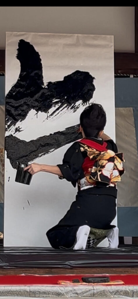 私の書道パフォーマンス(席上揮毫)は音と一体となり共に書き上げる唯一無二のものです。